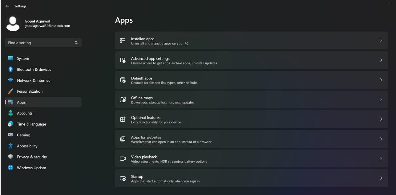 - 單擊“應用程序”,然後選擇“已安裝的應用程序”。