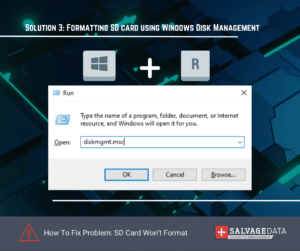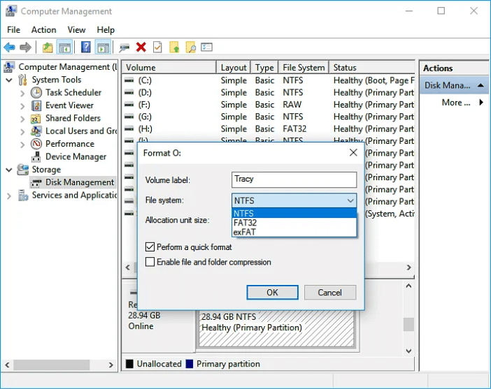 如果您無法以通常的方式格式化 SD 卡,您可以嘗試通過 Windows 磁盤管理強制執行此操作,這是一種旨在格式化磁盤的高級內置程序。 步驟 1:轉至我的電腦>管理>磁盤管理。或者打開命令提示符並執行diskmgmt.msc