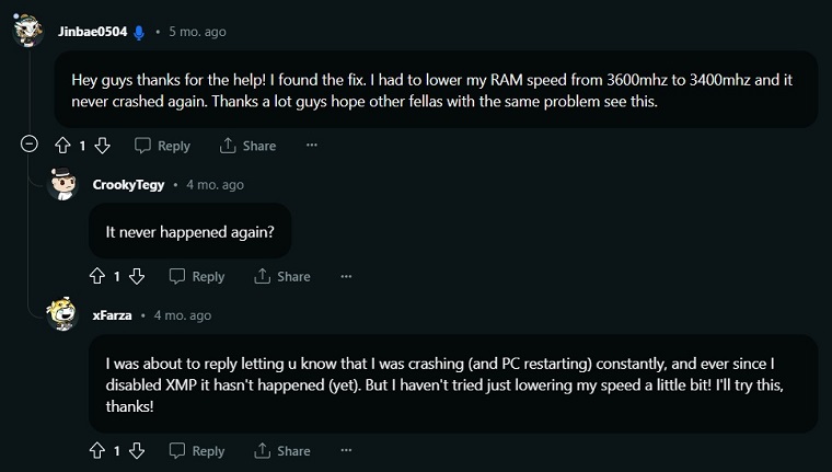 示例:如果您的 DRAM 頻率設置為 3600mhz,請將其降低到 3400mhz 或 3200mhz。