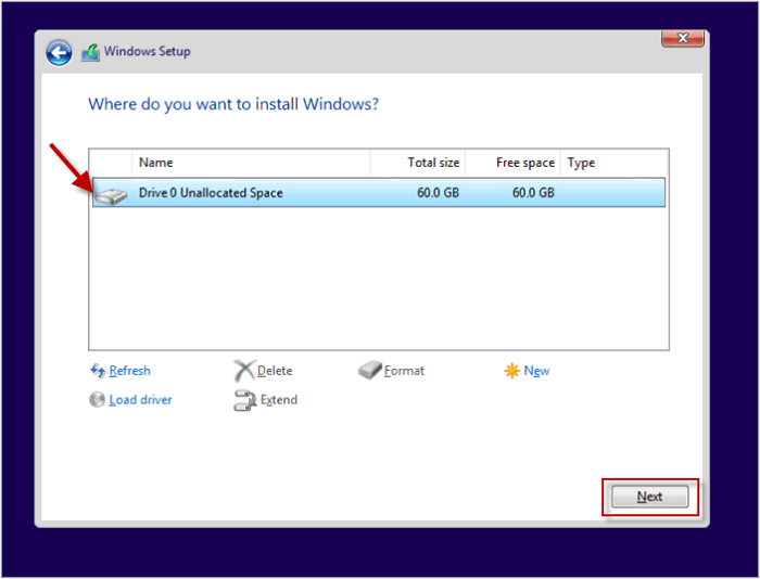 步驟9選擇用於安裝 Windows 的磁盤並單擊下一個。