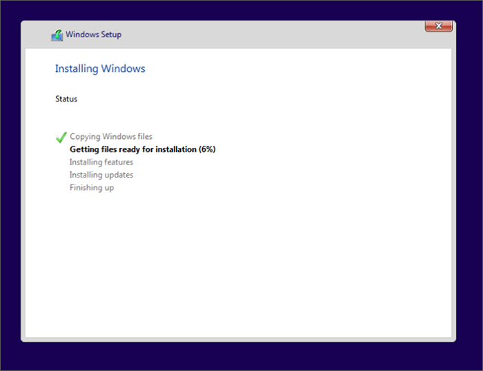 步驟10等待幾分鐘,準備好用於 Windows 安裝的文件。