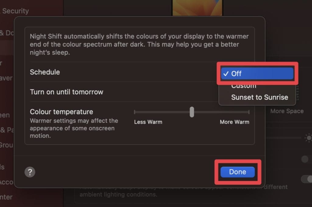 Mac 上的 Night Shift 會減少藍光,讓眼睛更舒服,但關閉它可能會降低某些用戶對 WindowServer 的使用率。以下是關閉 Mac 上的 Night Shift 的方法: