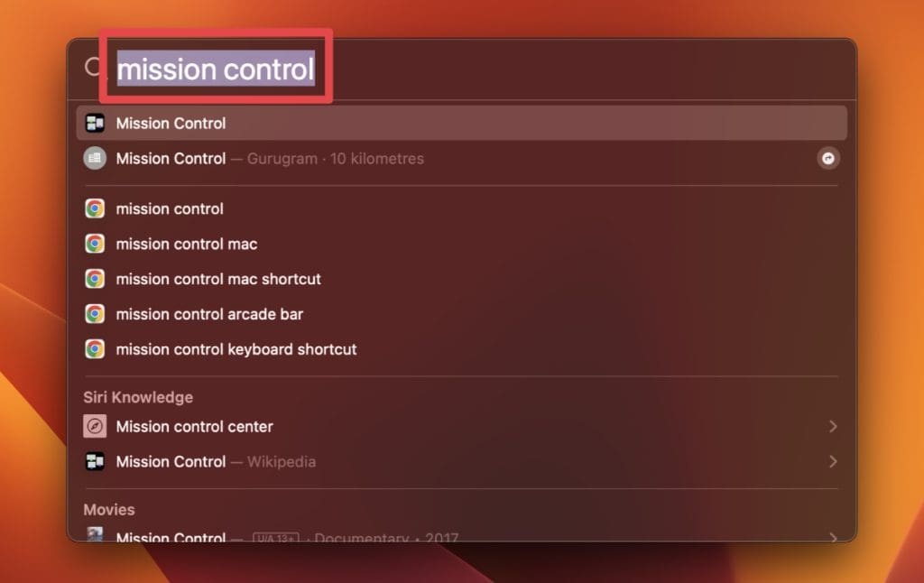 - 單擊任務控制Dock 中的圖標或在中鍵入 Mission Control聚光燈。