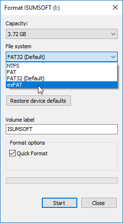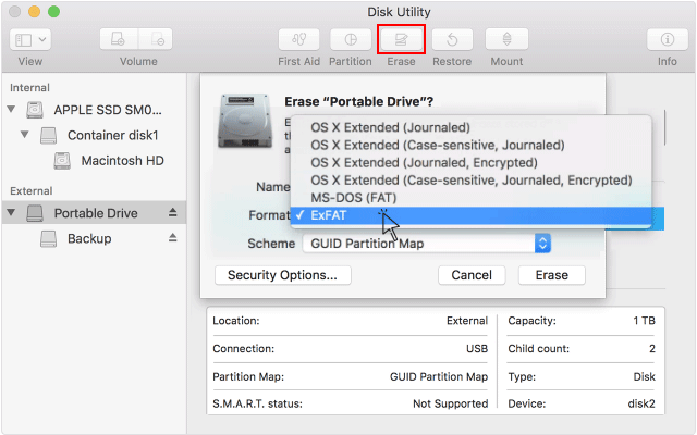 選項 1:在此電腦中將 USB 驅動器格式化為 EexFAT。