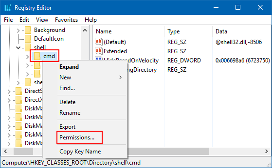 HKEY_CLASSES_ROOTDirectoryshellcmd