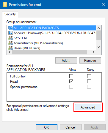 第三步:在出現的權限窗口中,單擊先進的。