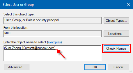 如果您的用戶帳戶未顯示在組和用戶名列表下,請單擊添加按鈕。
