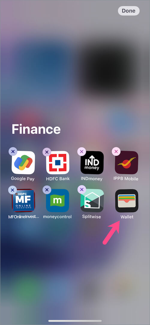 如果您在“財務”應用程序組中沒有看到“錢包”,請在“應用程序庫”中搜索該應用程序。應用程序庫這樣做,向下滑動