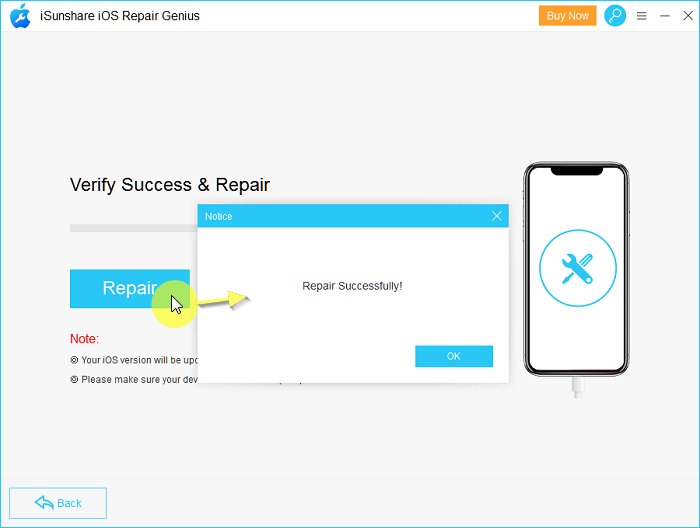 第6步:打維修按鈕修復 iPhone 卡在恢復模式的問題。稍後,iPhone將自動啟動,您可以發現您的iPhone已成功退出恢復模式。