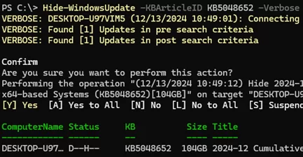 Hide-WindowsUpdate -KBArticleID KB5048652 -Verbose