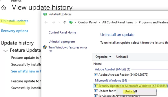 如果您已經安裝了導致問題的不需要的更新,您可以通過以下方式將其刪除:設定->Windows更新->查看更新歷史->卸載更新。單擊列表中的更新並選擇解除安裝。