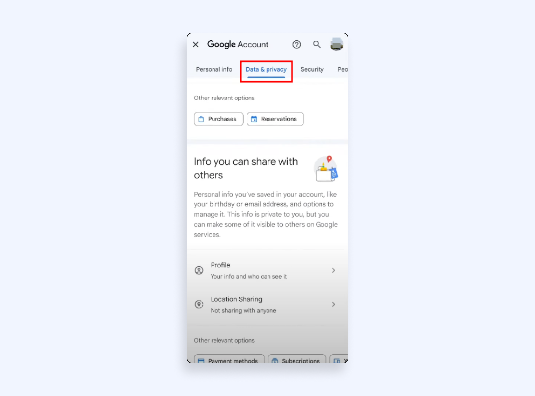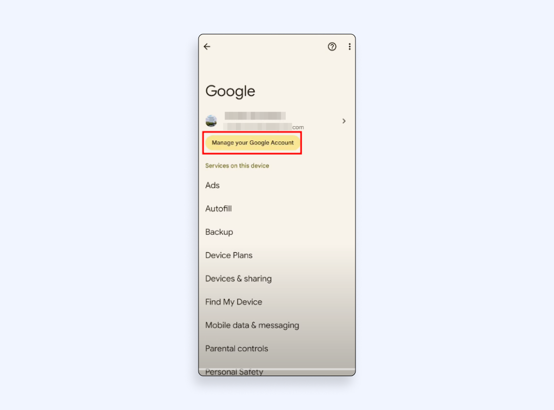 - 打開設置 → 帳戶 → Google → 選擇地址。