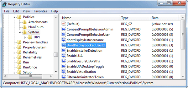 DontDisplayLockedUserId並給它以下值之一:- 1 = 用戶顯示名稱、域名和用戶名