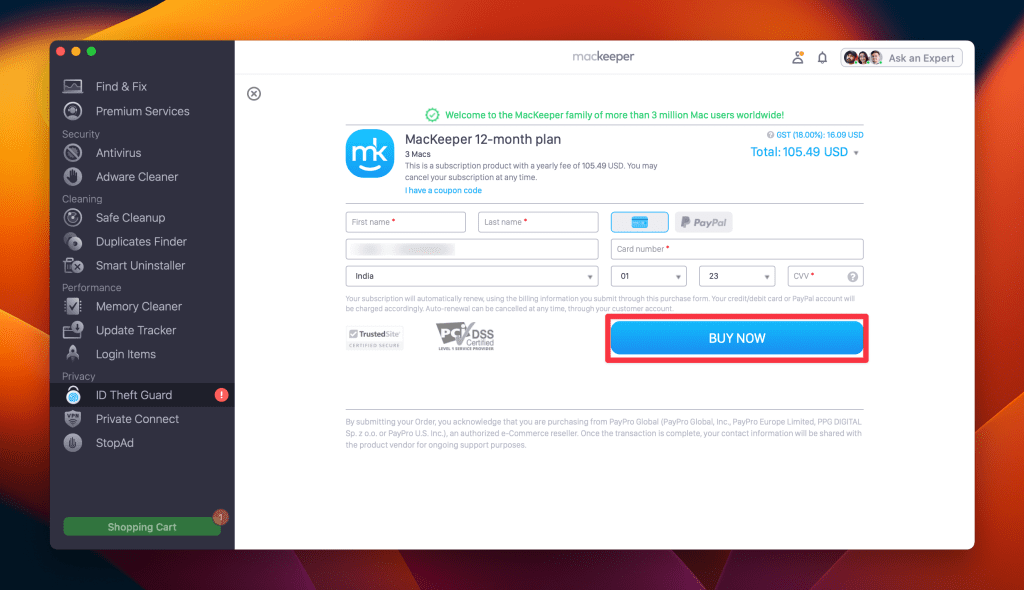 通常,許可證會在 5 分鐘內自動激活,但如果沒有激活,您可以手動激活。以下是激活 MacKeeper 許可證的分步過程: