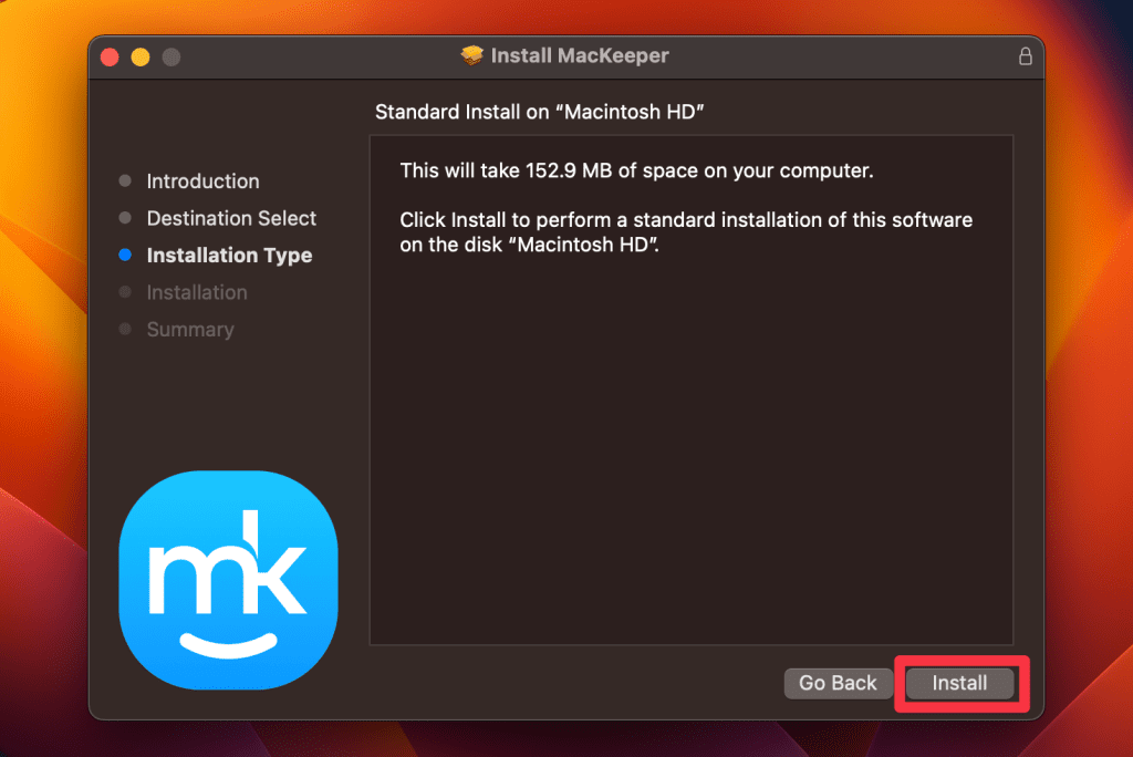 - 點擊繼續在“安裝 MacKeeper”窗口中。
