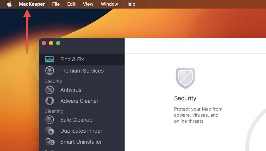 - 在 Mac 上打開 MacKeeper,然後單擊麥基珀在菜單欄中。