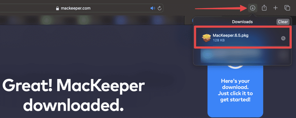 - 您的 MacKeeper 下載過程將開始,安裝程序文件將保存到您的 Mac下載文件夾。