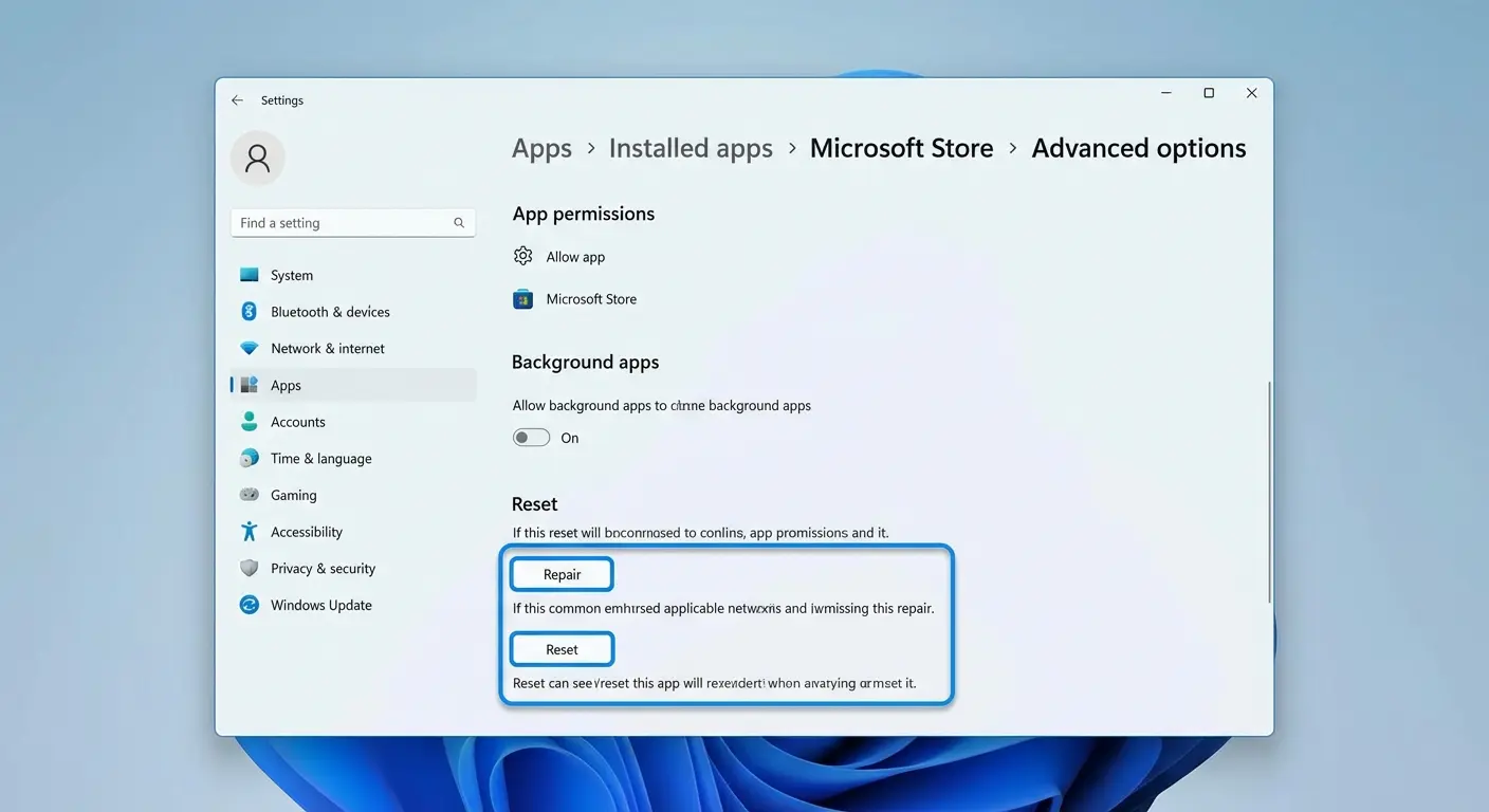 方法 2:在“設置”中修復或重置 Microsoft Store