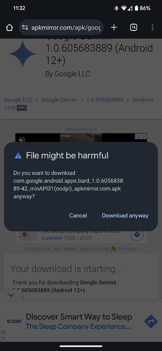 如果您從第三方來源下載了 Gemini 應用程序,則可能會遇到一條錯誤消息,指出“該地區目前不支持 Gemini”。然而,有一個簡單的方法可以繞過這個問題: