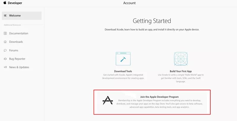 考慮到一些用戶尚未加入該計劃,我們首先創建一個開發者帳戶。