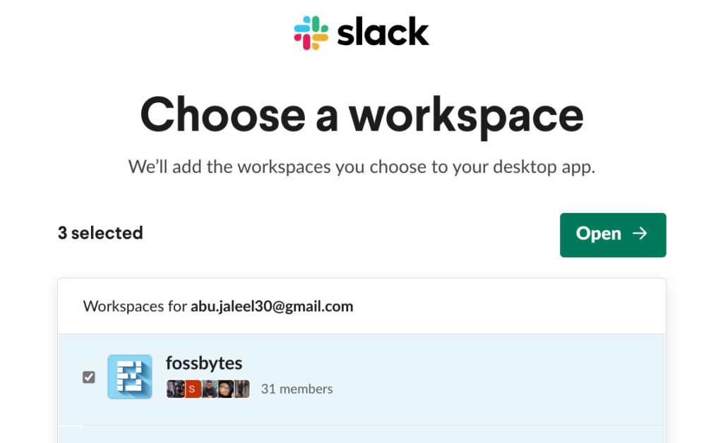 11. 選擇您要登錄的工作區。