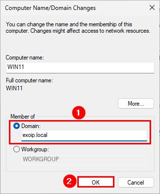 要使用 GUI 將 Windows 11 計算機加入域,請按照下列步驟操作: