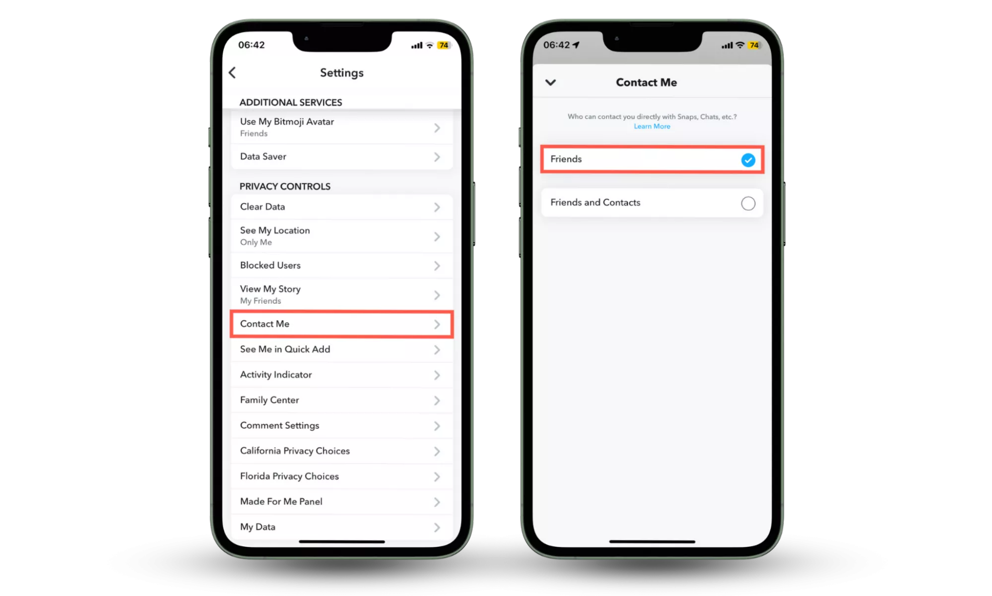 要限制誰可以在 Snapchat 上與您通信: