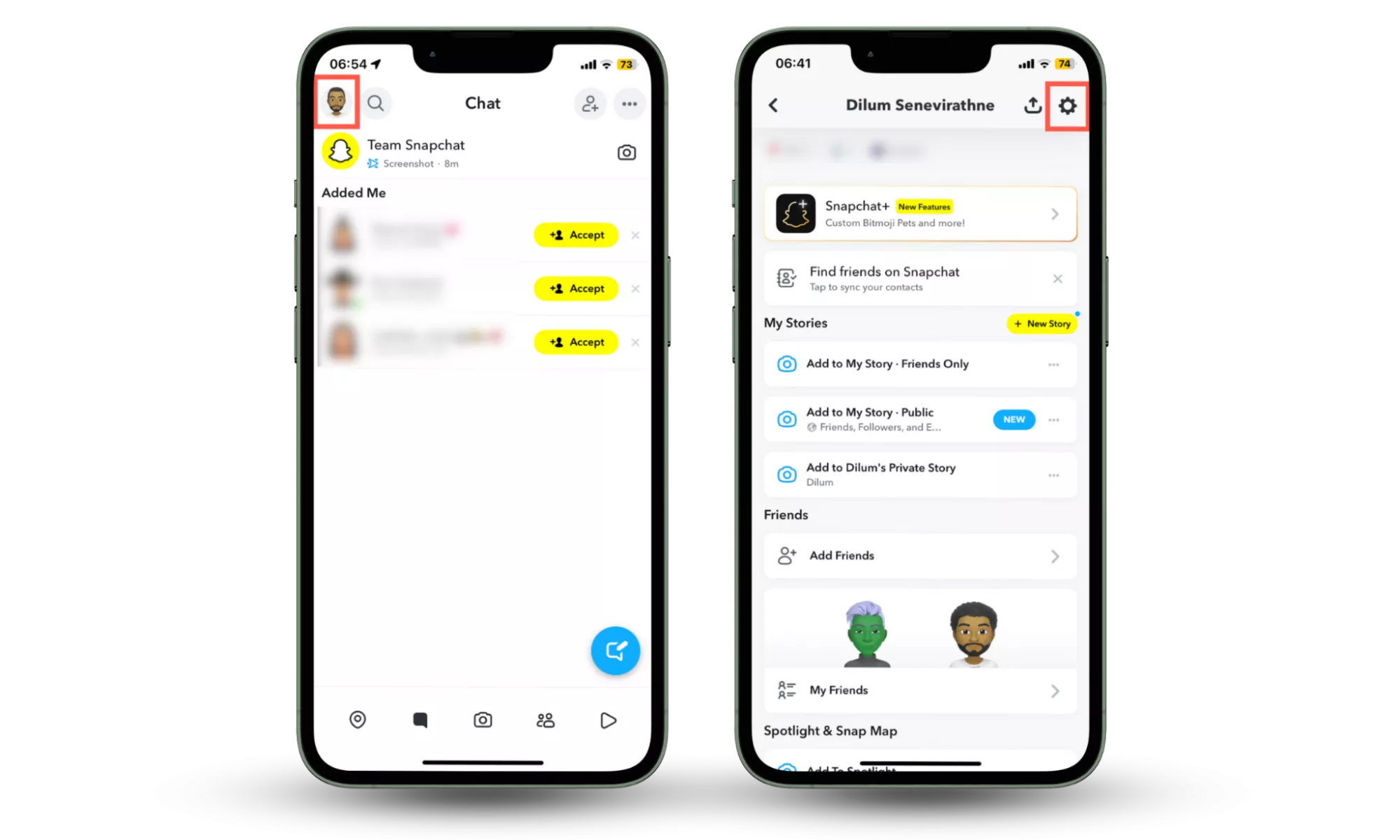 步驟 1-2:轉到您的 Snapchat 個人資料並點擊齒輪圖標。