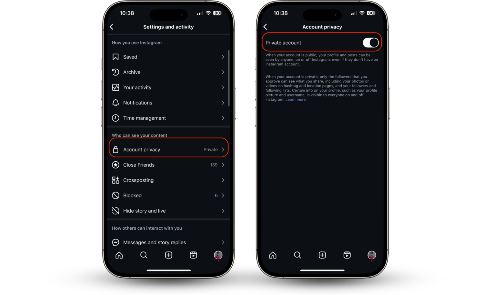 將您的帳戶設置為私人。限制誰可以看到您的帖子和故事。限制您的可見度可以降低引起不必要注意的風險。