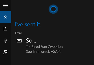 第 1 步:單擊有什麼問題就問我框並輸入或說出我想發送電子郵件至 [姓名]接下來是消息正文。