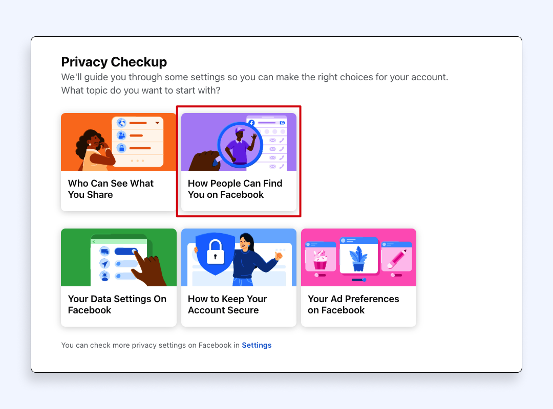 該工具將引導您完成鎖定 Facebook 個人資料的基礎知識: