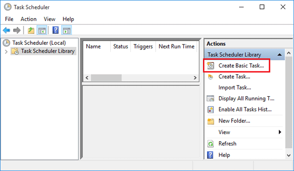 - 首先,打開任務計劃程序並單擊創建任務右側“操作”窗格中的鏈接。