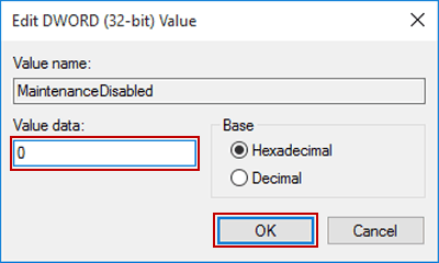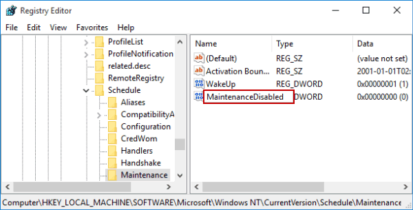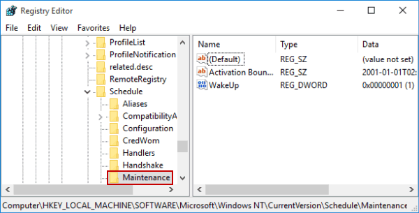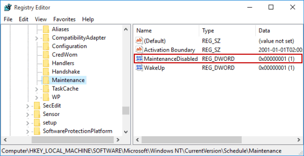 步驟2: 打開維護禁用在 HKEY_LOCAL_MACHINE/SOFTWARE/Microsoft/Windows NT/CurrentVersion/Schedule/Maintenance 中。