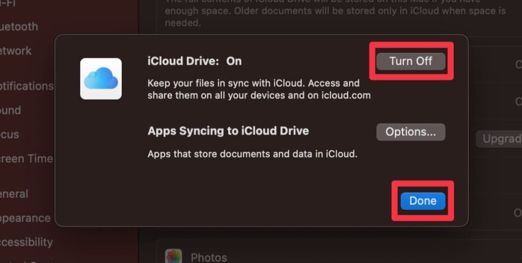 - 將出現一個新的彈出窗口。如果未啟用iCloud驅動器,請點擊打開按鈕並單擊完畢。