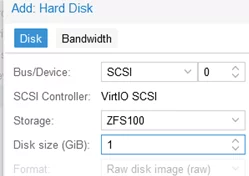 首先,向虛擬機添加一個小型 1GB 硬盤,通過 VirtIO SCSI 控制器連接。