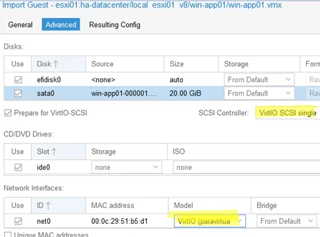 VM 傳輸完成後,您還需要執行一些額外的步驟。默認情況下,VM 使用SATA連接虛擬磁盤的控制器。如果在此階段將虛擬磁盤連接到 VirtIO SCSI 控制器,來賓 Windows 將無法啟動。