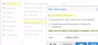 然後前往選項選項卡並啟用QEMU 訪客代理。