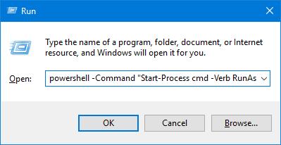 powershell -Command "Start-Process cmd -Verb RunAs