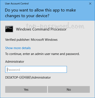 輸入正確的密碼並單擊是的。它將立即運行提升的命令提示符。