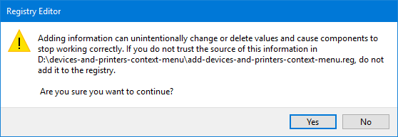 - 雙擊文件資源管理器中的 add-devices-and-printers-context-menu.reg 文件。