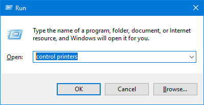 只需按 Windows 鍵 + R 快捷鍵即可調出“運行”對話框,或打開命令提示符。類型控制打印機並按 Enter 鍵。設備和打印機窗口將立即打開。