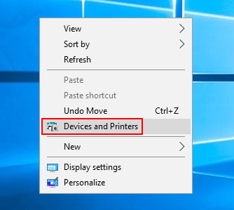 - 現在,右鍵單擊桌面上的空白區域。您可以訪問“設備和打印機”上下文菜單中的快捷方式。