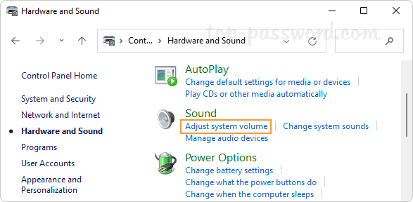 在“聲音”部分下,單擊“調節系統音量“ 選項。