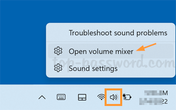 右鍵單擊系統托盤中的聲音圖標,然後選擇“開放式容積混合器”從彈出菜單中。