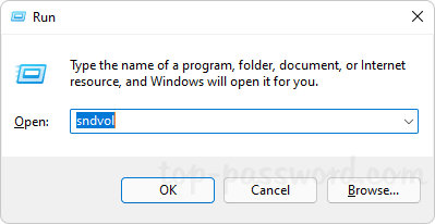 按贏+右要啟動“運行”框的鍵盤快捷鍵,請鍵入sndvol然後按 Enter 打開舊的音量混合器應用程序。