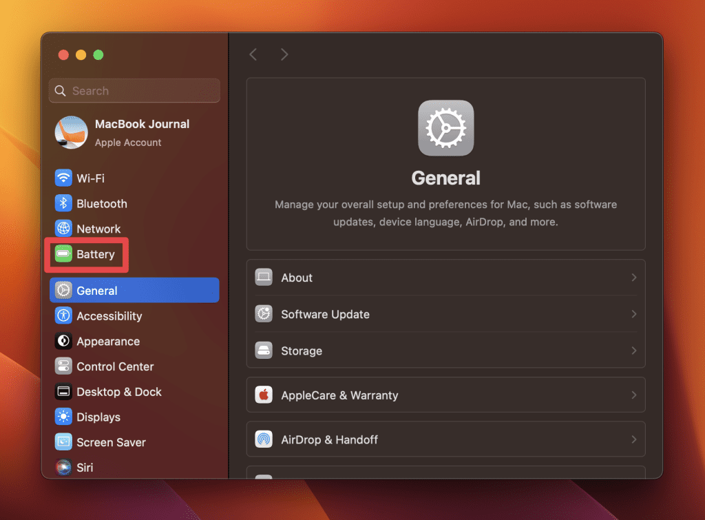 - 選擇電池從側邊欄。