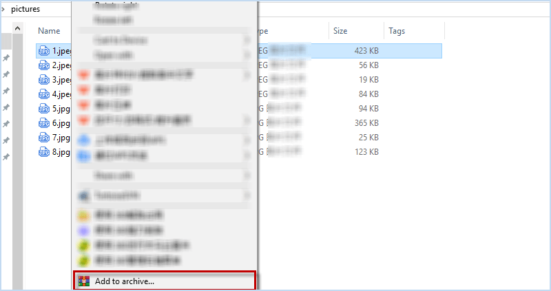 步驟2:右鍵單擊JPEG 文件並選擇添加到存檔。
