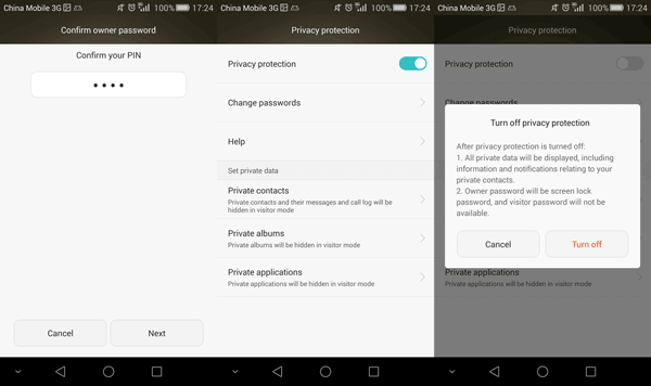 當然,你可以關閉隱私保護有一天,如果您不想將聯繫人/相冊/應用程序設置為隱藏,只要您有所有者密碼。