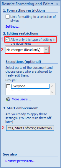 提示:這不能完全保護文檔(文檔未加密)。它只有助於防止人們關閉編輯限制。為了更好地保護,請加密文檔。