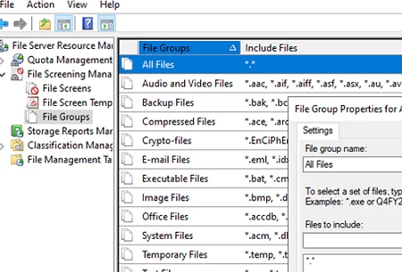在這種情況下,勒索軟件保護的想法是預定義允許在共享網絡文件夾中創建的文件組。 FSRM 已經為不同的文件類型預定義了文件組。